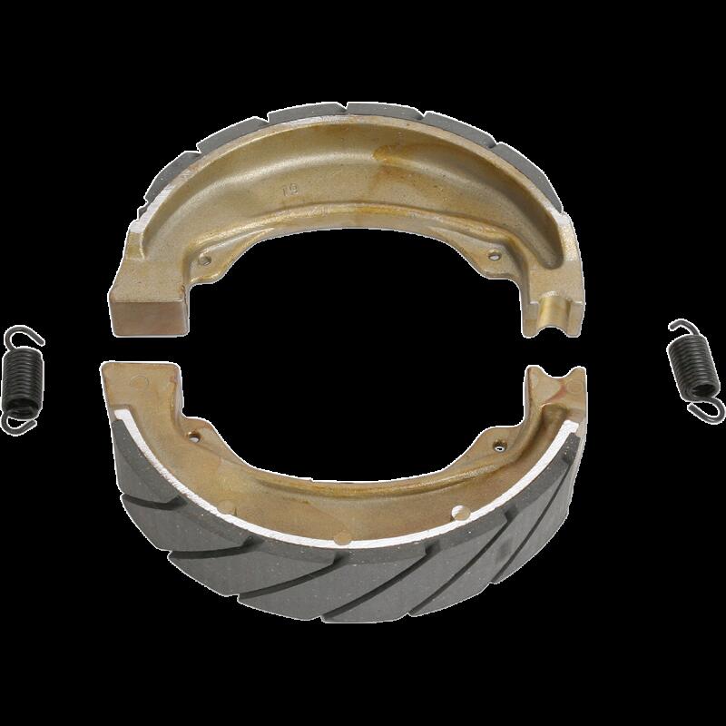 - Made using high pressure die cast aluminum platforms with bonded brake linings^All shoes are radius ground and edge trimmed^Features lead in and lead out chamfers at lining ends^Original equipment style brake shoe springs included