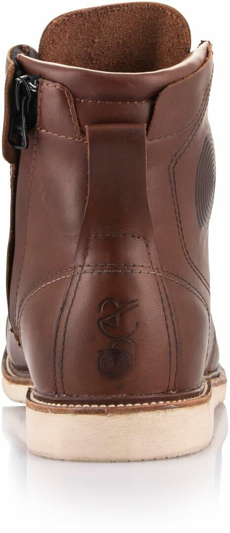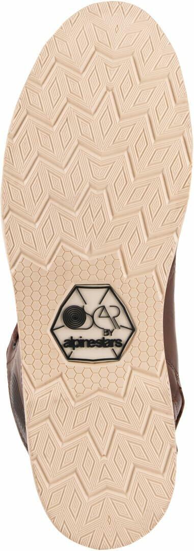 - A full 1.4 - 1.6 mm bovine leather protective riding shoe with a timeless style from the 60's defined by the wedge outsole and the moc toe that has been re-engineered by Alpinestars for motorcycling use with a dedicated shape to accommodate the shift
