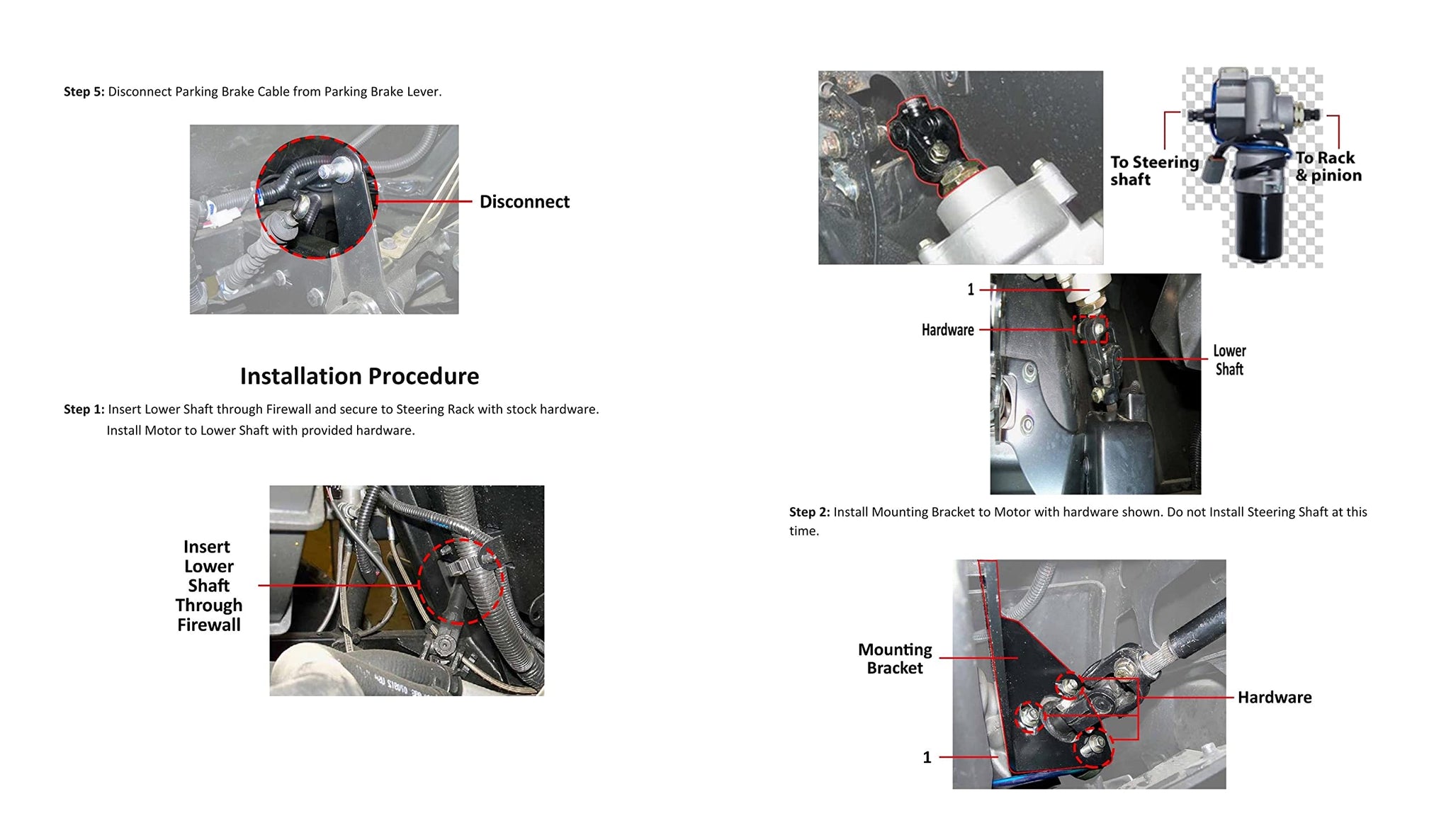 - Designed to make your ride better, even when running larger tires or modified suspension. The mount plate positions the motor and steering shafts under the dash for discrete visibility with no driver interference.