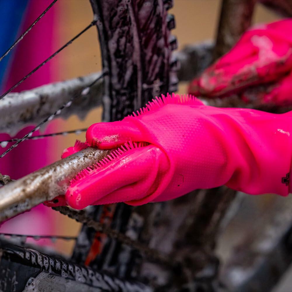 - DEEP CLEANING ABILITY: Muc-Off Deep Scrubber Gloves are designed to help reach stubborn dirt in the tightest of areas - making your post-ride clean up a lot easier. The durable bristled fingers allow you to get into every nook and cranny on your bike!