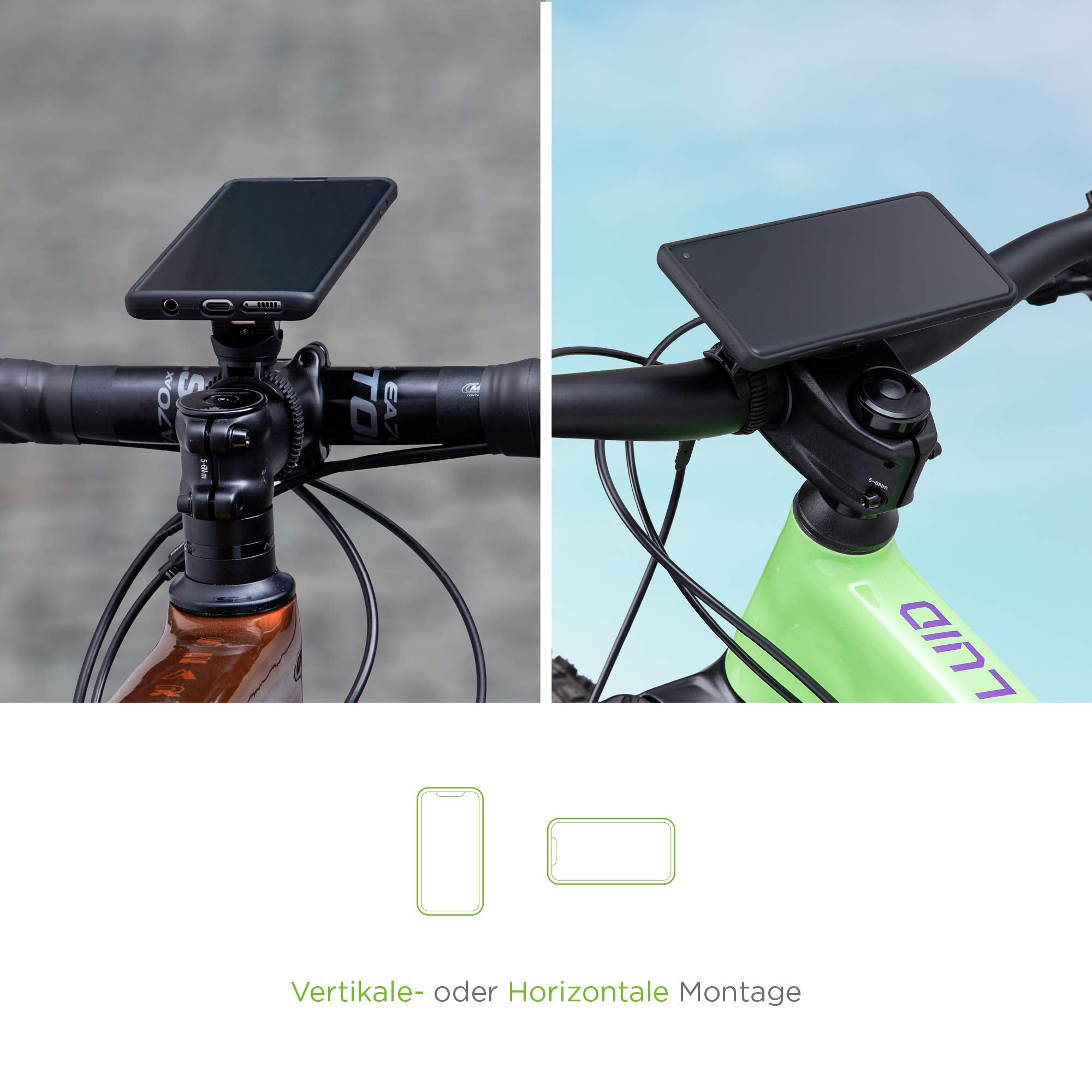 - Mounting options: you can attach the bicycle mount without tools in portrait or landscape format to handlebar diameter of 22-42 mm and adjust it individually by the angle adjustment.