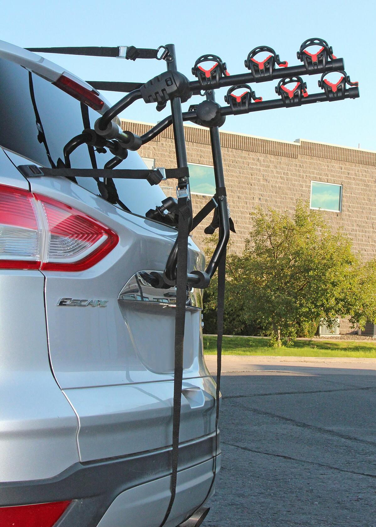 - Soft padded cradles and rubber straps help position and secure the bikes